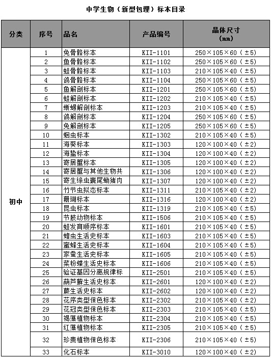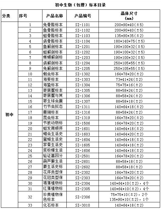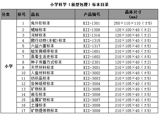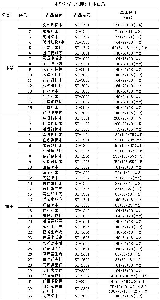 中小學標準配備系列包埋標本涵蓋了國家中小學標準配備標本要求的所有標本品種,包括植物外形、植物生活史、植物結構、動物外形、動物生活史、動物結構、動物骨骼、動物解剖,礦物等標本產(chǎn)品。產(chǎn)品符合國家教育部行業(yè)標準、企業(yè)標準、以及行業(yè)通行的安全標準,與教學大綱緊密配套,是中小學自然生物課堂的直觀教材和先進教學用具。