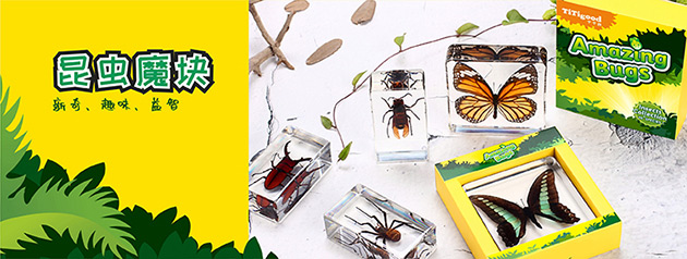 昆蟲魔塊系列產(chǎn)品,是由昆蟲包埋標(biāo)本配套觀察工具組成。標(biāo)本晶瑩通透、精致小巧,昆蟲自然真實(shí)、栩栩如生,激發(fā)孩子的無限好奇。通過對昆蟲標(biāo)本的觀察、認(rèn)知,培養(yǎng)孩子的興趣愛好、觀察能力和探索能力。