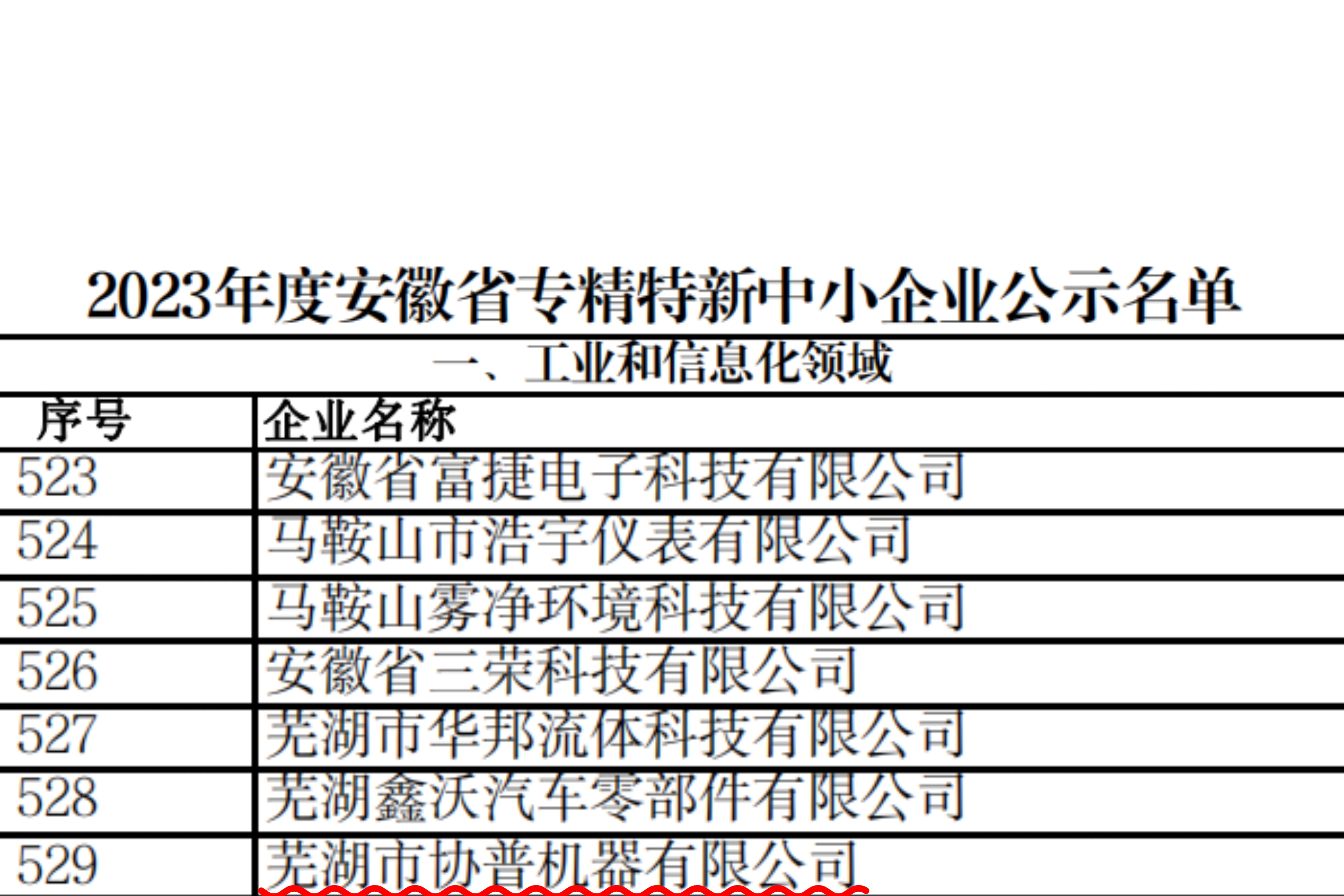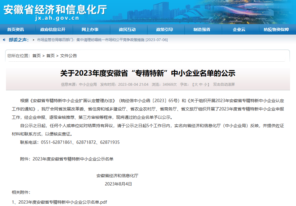 關于2023年度安徽省“專精特新”中小企業(yè)的名單,