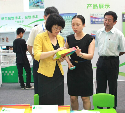 自治區(qū)教育廳廳長(zhǎng)秦斌在詳細(xì)了解新型包埋標(biāo)本