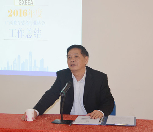 廣西教育裝備行業(yè)協(xié)會(huì)陳鐵華會(huì)長(zhǎng)在會(huì)上做了2016年度工作總結(jié)和下一年度工作計(jì)劃報(bào)告,他表示,2016年協(xié)會(huì)基本完成各項(xiàng)工作任務(wù)目標(biāo),并對(duì)這一年來(lái)上級(jí)領(lǐng)導(dǎo)和各成員單位對(duì)協(xié)會(huì)各項(xiàng)工作的支持表示衷心感謝!隨后,陳會(huì)長(zhǎng)簡(jiǎn)要總結(jié)了這一年來(lái)協(xié)會(huì)完成工作情況,并介紹了各項(xiàng)工作取得的成果,特別是最近圓滿完成籌辦第71屆中國(guó)教育裝備展示會(huì)任務(wù),獲得了政府及社會(huì)各界的極大肯定,這與大家的不斷支持和努力是分不開的。對(duì)于即將到來(lái)的新一年,陳會(huì)長(zhǎng)做了協(xié)會(huì)工作任務(wù)布署,未來(lái)一年,廣西教育裝備行業(yè)協(xié)會(huì)將進(jìn)行機(jī)構(gòu)改革,成立各個(gè)專業(yè)分會(huì),發(fā)展推廣隊(duì)伍,讓企業(yè)全方位參與協(xié)會(huì)工作;不斷加強(qiáng)管理,形成寬松、互動(dòng)、共贏的環(huán)境,建立公正、公平、嚴(yán)明的規(guī)章制度,更好的服務(wù)于企業(yè),促進(jìn)廣西教育裝備行業(yè)良好發(fā)展。最后,陳會(huì)長(zhǎng)對(duì)南寧千年工藝股份有限公司、南寧千帆教學(xué)科技有限公司給予本次會(huì)議的大力支持表示感謝,并祝愿協(xié)會(huì)各成員單位事業(yè)興旺發(fā)展!
