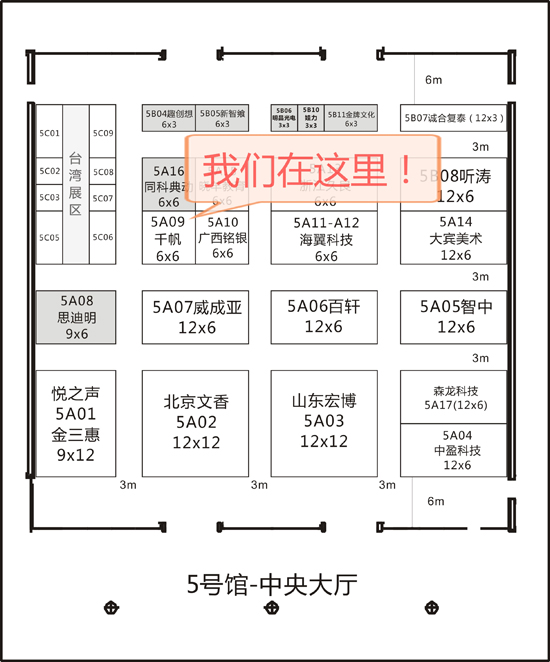 千帆展位號:5號廳5A09 千帆展位號如圖所示: