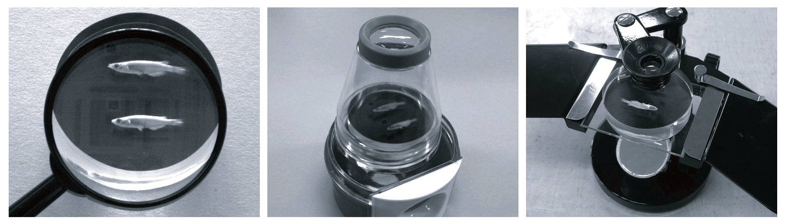 雌雄青鳉魚對(duì)比 顯微觀察標(biāo)本